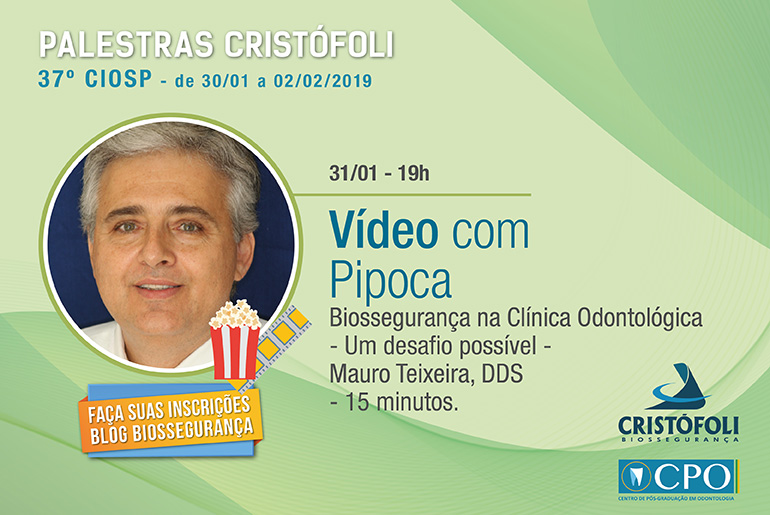 O vídeo com pipoca (2): Biossegurança na Clínica Odontológica – Um desafio possível por Mauro Teixeira DDS, vai ser acompanhado por pipoca e acontecer durante o 37o CIOSP. Um momento de descontração e aprendizado.