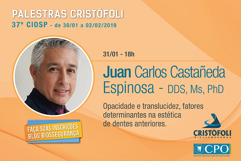 A palestra: Opacidade e translucidez, fatores determinantes na estética de dentes anteriores, será ministrada por Juan Carlos Castañeda Espinosa durante o 37o CIOSP.