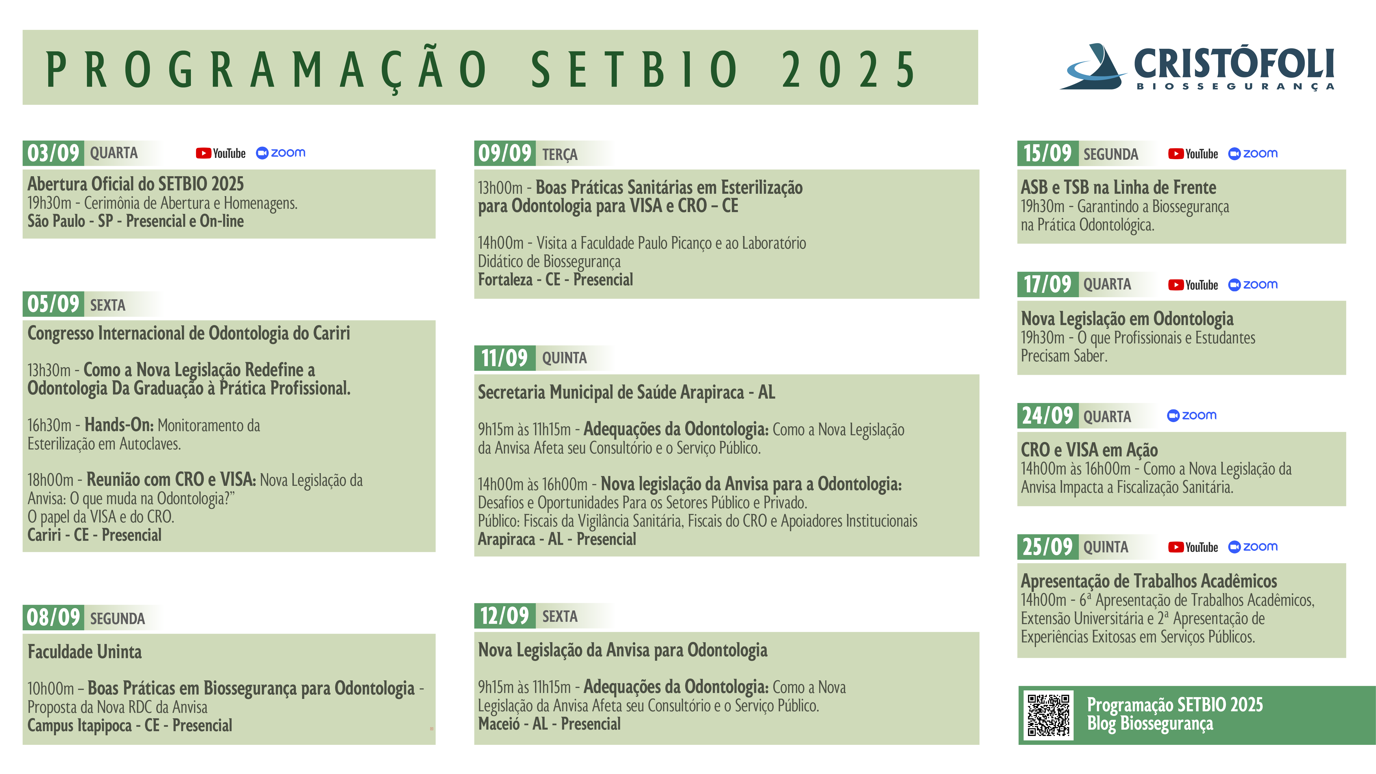 Pingback: SETBIO 2025 - Boas Práticas em Esterilização para Odontologia 09 09 em Fortaleza - Blog Biossegurança | Cristófoli