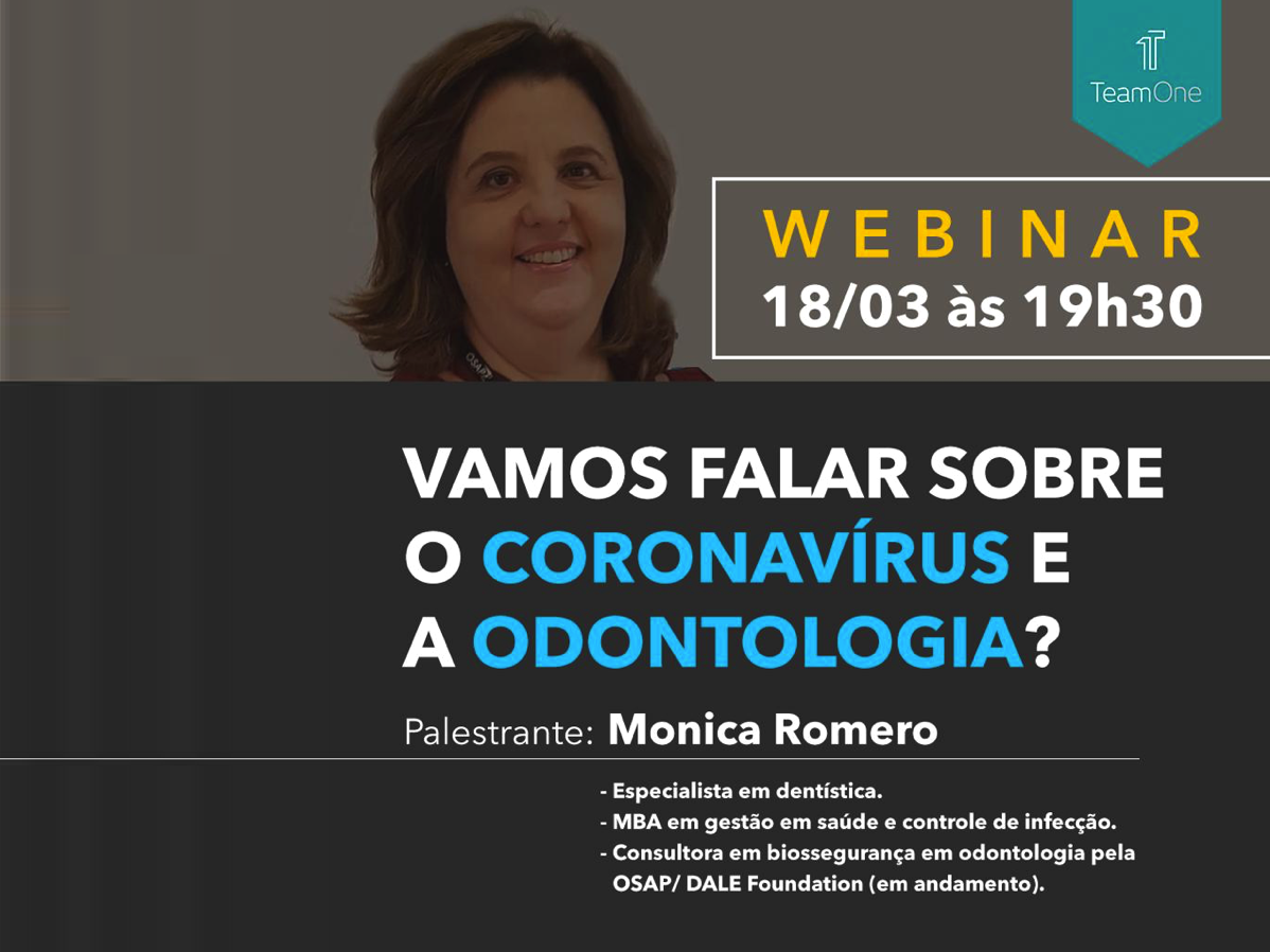 Faço um convite para toda a comunidade odontológica para assistir ao Webinar Coronavírus e a Odontologia com Mônica Romero, hoje 18 de março às 19h30m.